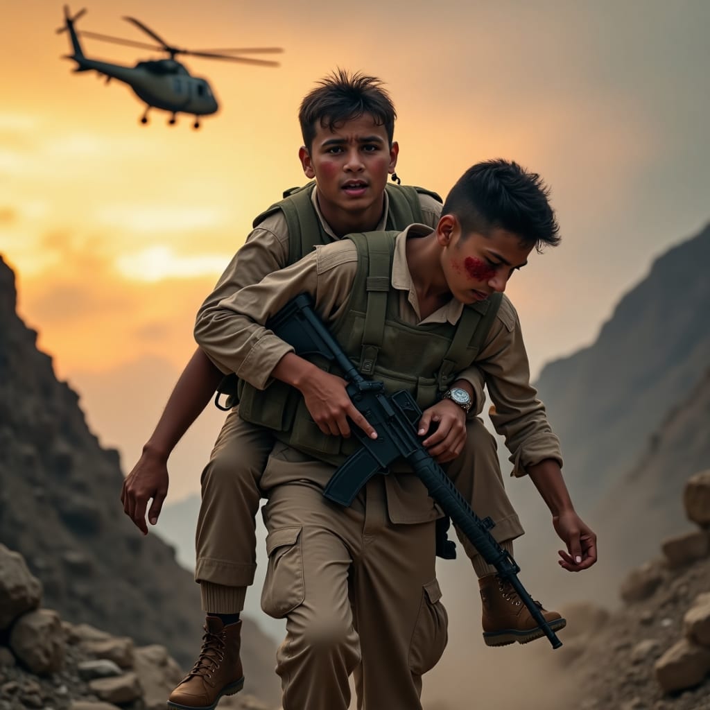 With one arm bleeding and another gripping the radio, he called for air support and backup. For over two hours, Ali kept his injured friend conscious, shielding him with his own body.