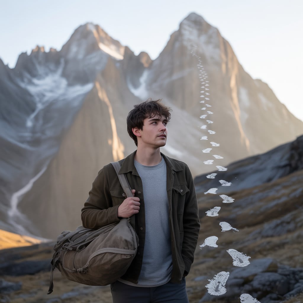 The next morning, David packed a small bag with food and supplies, said goodbye to his family, and began his journey. As he walked toward the base of the mountain, he couldn't help but feel a mixture of excitement and fear. The path ahead was steep, and the higher he climbed, the more difficult the journey became. The air grew thin, and the path narrowed, but David pressed on, his heart set on reaching the top.