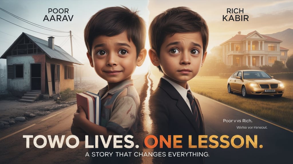 Kabir, on the other hand, woke up late. His servants prepared his breakfast, packed his bag, and drove him to an elite private school in a luxury car. He never had to worry about money or effort. But deep inside, Kabir often felt lonely. His parents were always busy with meetings and business trips, leaving him surrounded by wealth but lacking love.