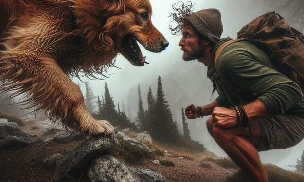 As they drew closer, they realized that they were facing a hungry wolf, its fur bristling with aggression as it bared its teeth in a menacing snarl. Goldie stood his ground, his hackles raised and his teeth bared in a silent challenge to the predator.