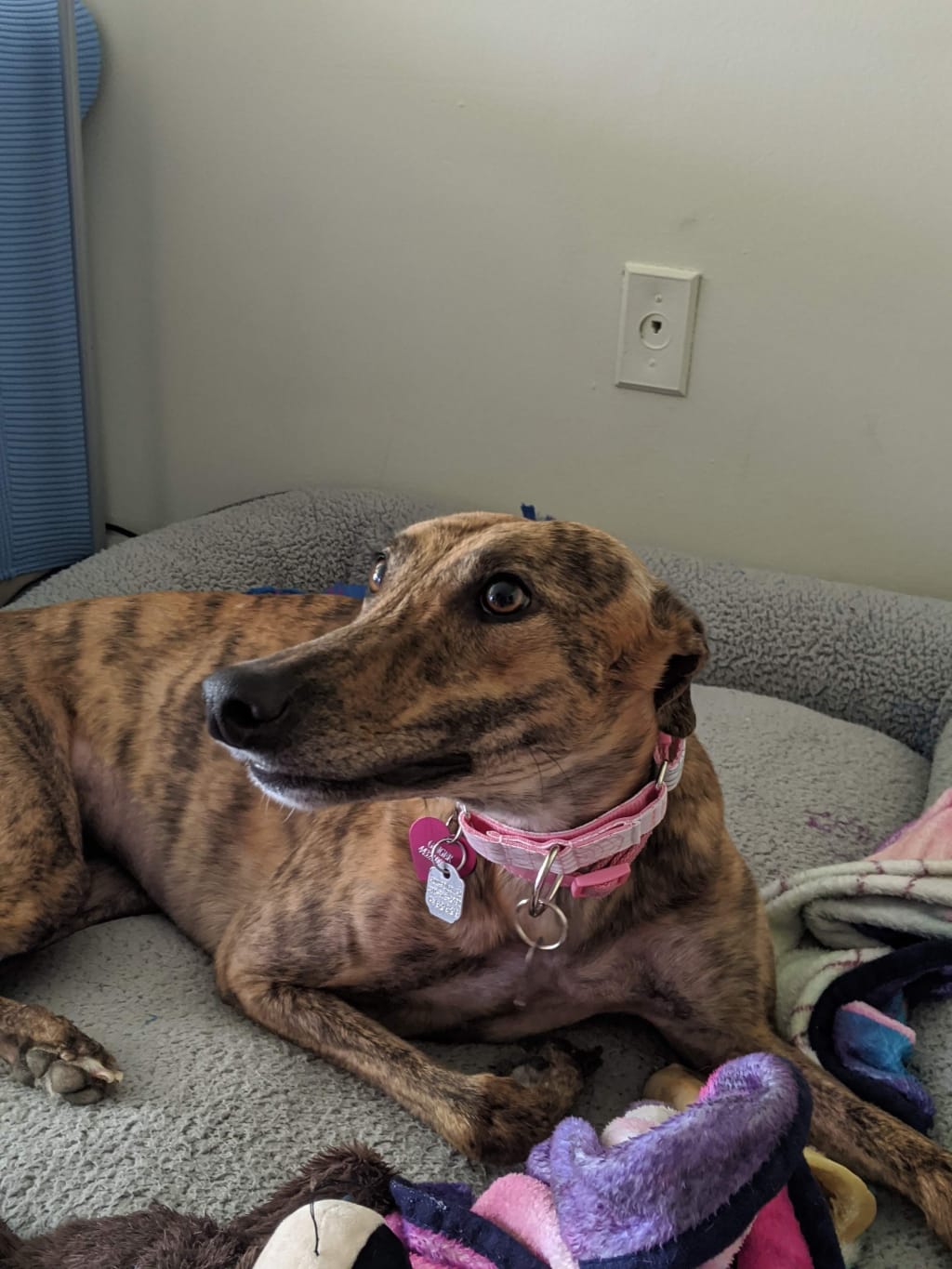 January of 2020. Two months earlier at 23, I had moved out of my parent’s house and started renting my first apartment with my partner. He and I are both animal lovers; we had three reptiles between the two of us. So getting a dog seemed to be the natural progression of things. We both spent days and days looking for adoptable dogs in our area. Many of them were pitbull mixes (pitties have the cutest faces!). But then we checked our apartment’s new pet policy. No “aggressive breeds” allowed, pitties and even German Shepherds included. Our hearts broke. While I had grown up with small dogs most of my life, my partner had his heart set on getting a larger dog. “What about a greyhound?” He asked. He had grown up with three of them and had nothing but good things to say about them. Like many people, I didn’t even know greyhounds were a thing. I mean, I knew of them, the greyhound bus and all that. But I didn’t know anyone who had ever owned one. I hadn’t even met one in person. I looked more into the breed, fell in love with everything about them, and put in an application with our region’s greyhound rescue.