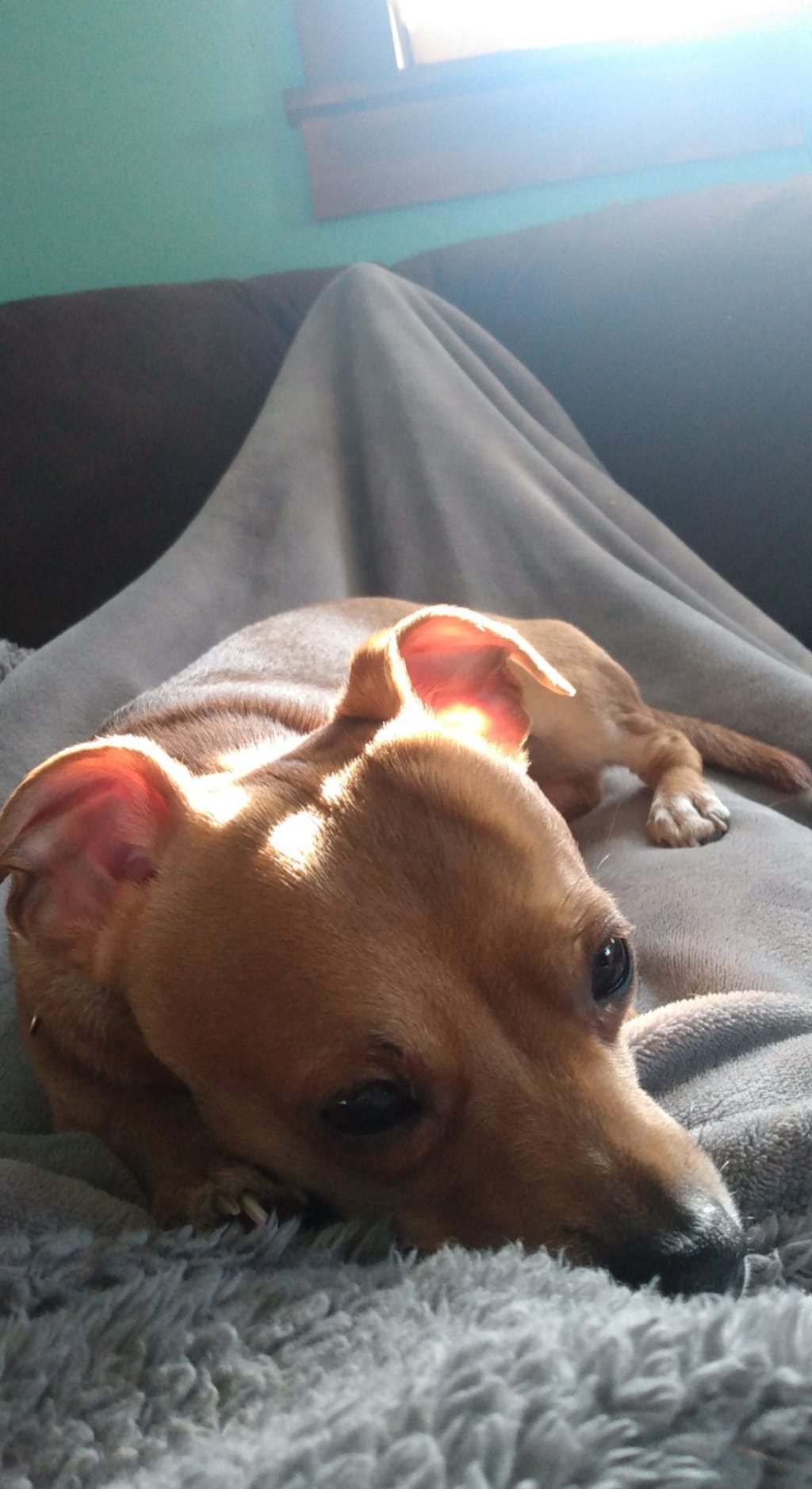 Nevertheless, he has wormed his way into everyone's heart and is the absolute sweetest dog you could ever meet. Charlie can be a bit of a jerk at times but he's a lifelong companion. Although things have changed since we got him though. Maya passed away in 2017 which sent him into a state of depression, but we rescued another dog in 2020, Molly. Charlie and Molly have grown close in the eight months we've had her. They both share a love for cheese, any and all kinds. Molly has picked up a few things from Charlie, like jumping on us, its funny because Charlie is this small dog and Molly is six times bigger than him so she almost knocks us over. And whenever Charlie yawns he makes this sound it's like he's got a furball in his throat, now whenever Molly yawns she makes her own sound. Somedays he'll lay in the windowsill others he'll curl up under the covers, he'll even curl up in between your legs.