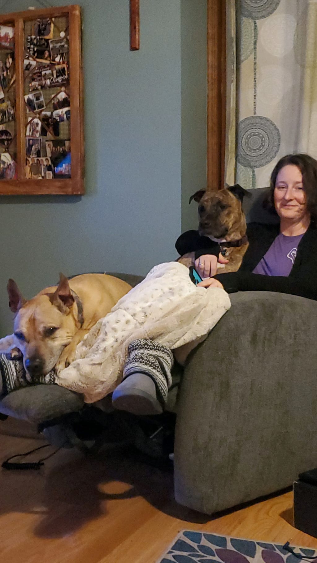 The Animal Control Center would frequently hold adoption events at the Tractor Supply stores in town. We noticed that just such an event would happen the next weekend and checked out the animals that would be there. A beautiful German Shepherd caught Allen’s eye. I was interested. But then I saw another description. “Nova. Female brindle pit mix. Between three and five years old. Puppies have been adopted.” It went on to say that since she had been at the shelter for so long, she would be put down soon. I knew which dog Cael and I would be looking at. Allen? He could check out the German Shepherd. I’m visiting this poor girl.