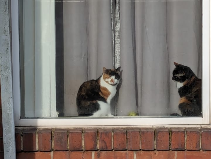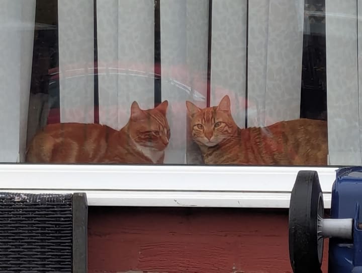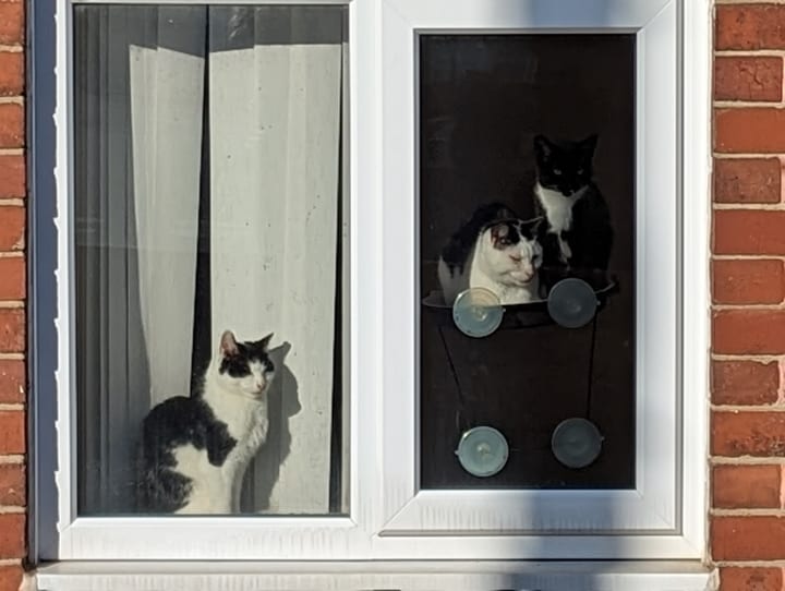 I love this one, two marmalade cats on their windowsill in the warm. I don't know if they even noticed me.