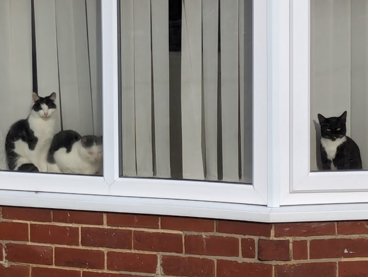 Three kittens in a window, and this is back in 2023. I am sure I took more pictures of pairs of cats, but they seem to be a little elusive as I go back through my photographs.