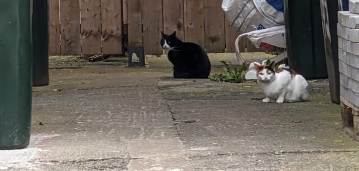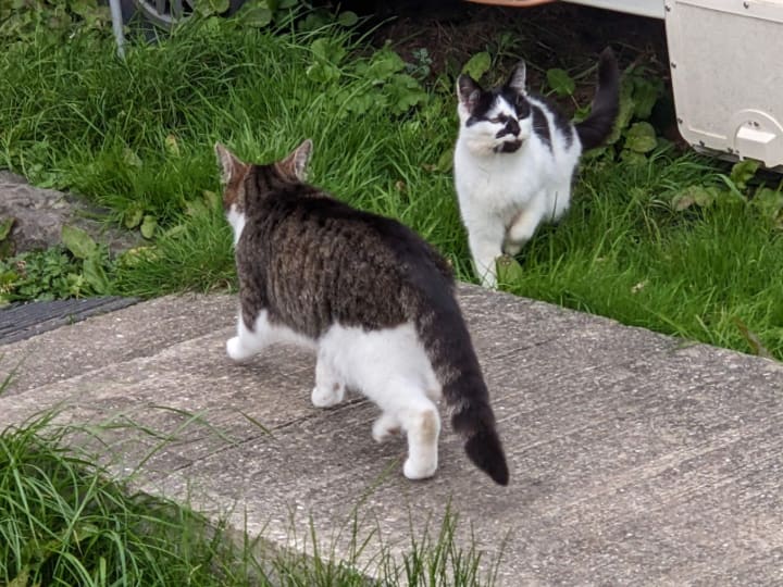 Another pair that I sometimes see, these ran under the caravan that was parked next to the house. The caravan is no longer there, and I don't think these cats are either. Hopefully, they found somewhere much nicer to be.