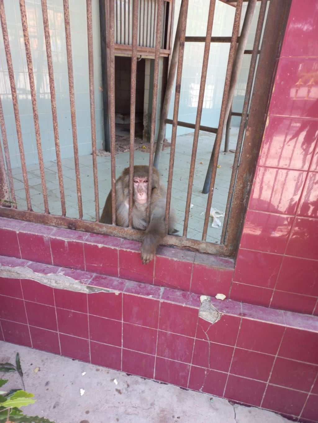 To muster my courage, I moved down the hill towards the monkey enclosure, but the stairs were broken, and it could cause a serious accident in the future. The monkey enclosure was stinking, and looking at the poor apes' faces, my heart melted.