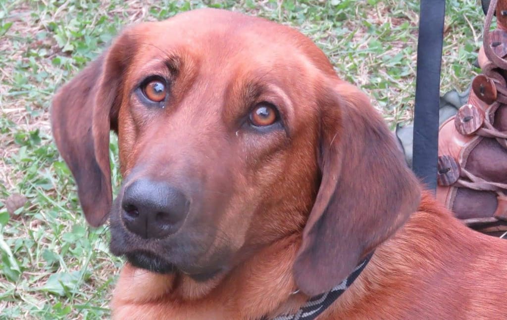 Most of the dogs ignored me. They focused on birds or passing cars. Even when I kneeled to talk to them, their attention was always elsewhere. This happened with all three labs and the shepherd. But the coonhound was different. When I squatted to talk to her, she sat up on her haunches and put a paw on each of my shoulders to look right in my eyes. We bonded immediately. It may seem like I was expecting too much from the dogs, but I don’t think I was. I was looking for a connection, and I found it. I’ve experienced nothing else like it in my life. In that moment, I knew she was the one, and it turned out she knew I was the one as well.