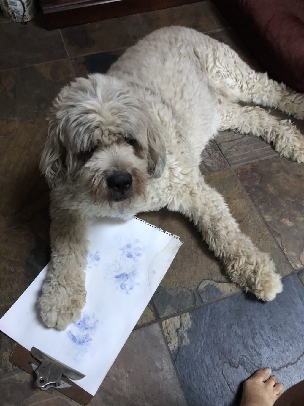 Throughout the work day, Emma remains dependable. Her natural enthusiasm, rigor and dedication to myself make her indispensable to our team. She is on call 24/7 and never objects to odd work shifts. She is always willing to go for an inspirational stroll with me to keep ideas flowing. Whatever my needs, she is by my side. She knows her number one objective is harmony in the workplace and to sooth me. However, as a secondary duty she often prowls the property as a security pup warning away any intruders such as a mail carrier, Amazon worker or anyone that may interrupt our work flow and tranquility. While her bark is clearly worse than her bite, others don’t need to know this. Emma just wants to be a “good girl” and requires nothing more than a pat on the head.