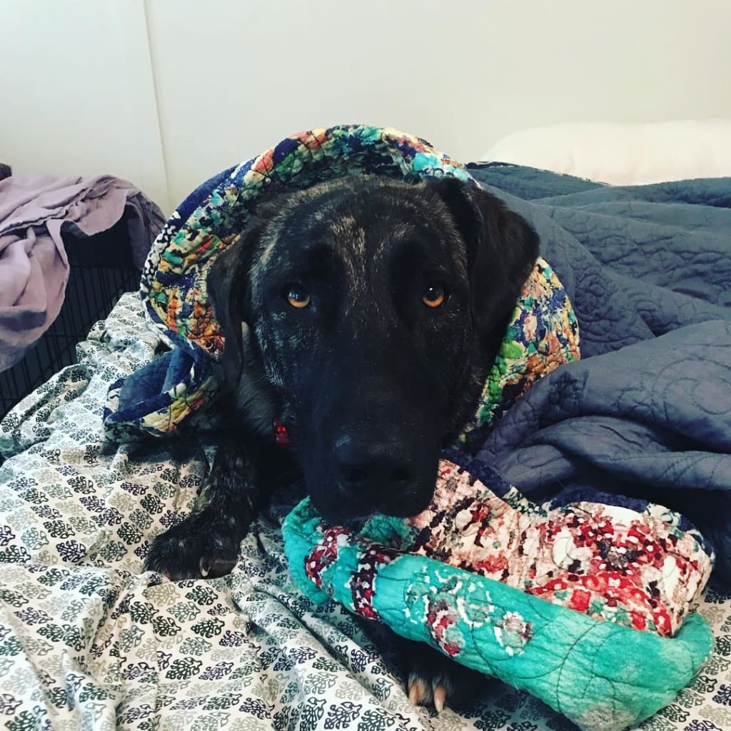 So yes weeks later she pees, and whines, and cries, and hates the car. She is hard to train, and possibly deaf in one ear. She is emaciated, came home with pneumonia, and sheds all over the house. She is a far cry from an easy dog. We found out she is only a year old. So her problems are far from over. Her submissive nature, and potty problems suggest of a dark past. Scars indicate a cruelty I will never understand. I don't think she's ever lived in a house before to be honest. Her soul is now mine to protect though, and I welcome it. In fact I need it. Our silent trauma bonding is as loud as can be. She sleeps quietly on my legs and wraps a paw around my arm so I am stuck. Unable to abandon her. Eventually she will know that through thick and thin we have each other, but for now... I will clean up her pee with love and remind her how amazing she is every time she remembers to go outside.