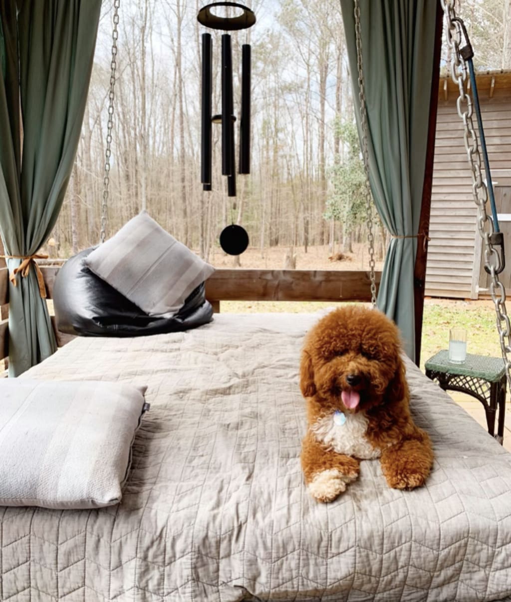 So, I laid down on the big swinging bed on the porch, in front of a gray stone, dual-sided fireplace, with Karma, and tried to release all the anxiety that had been building over the months leading up to our escape.