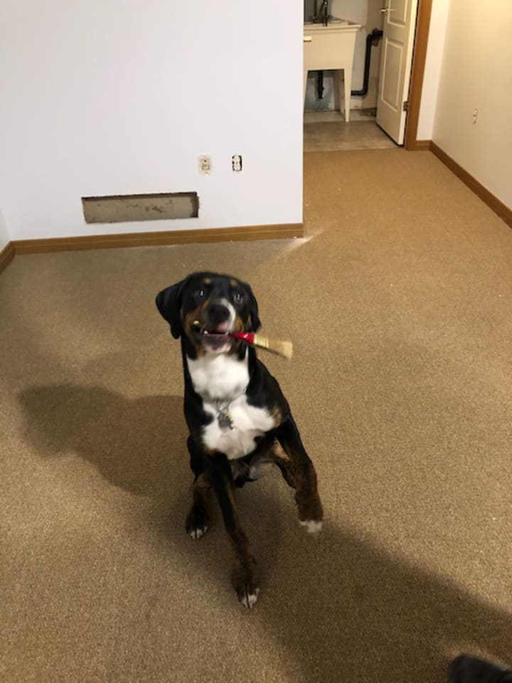 Within a few months, we were moving into a bigger apartment, with a big backyard for our pup. Your dad and I were painting the bedroom when you picked up a brush and wanted to help. You surprised me with your excitement about the new apartment.