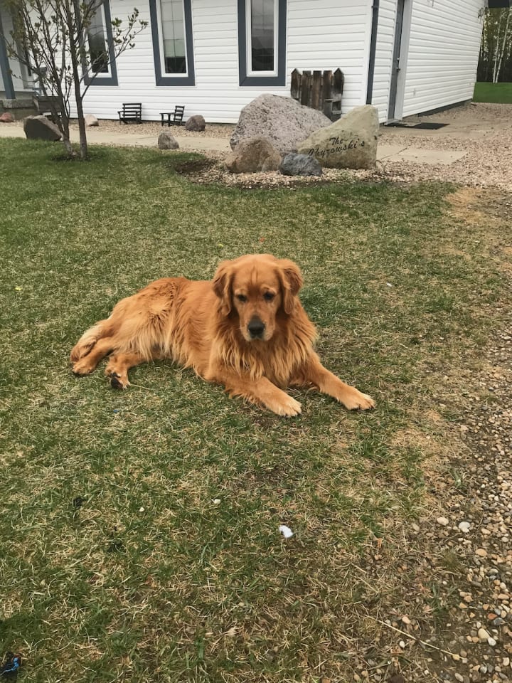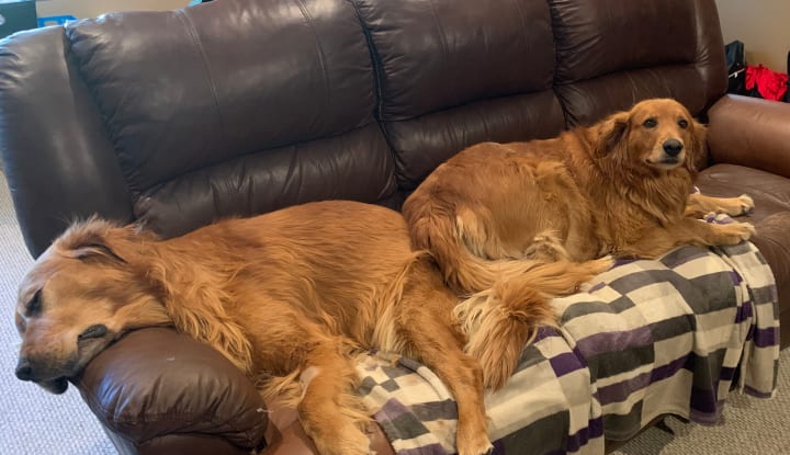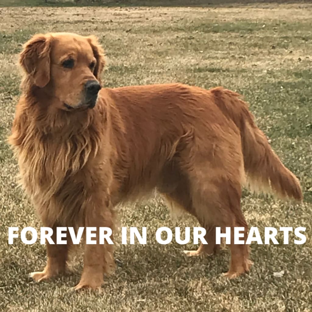 Buddy's whole life changed once we made the adjustments to his diet and we did not see the vet again until 2 days before we lost him. For about 3-4 years we had no health issues with any of our dogs, which would blow my mind sometimes, how can I have 4 Golden Retrievers and no vet bills? One reason, I was using daily preventive steps and they were working; Reason two I had learned how important their diet is to maintain good health. But at the end of September 2021, we decided to take Buddy to the vet, as he had a limp for over a week and the usual remedies seemed to only be managing his discomfort, he never yelped or showed any indications of pain, but he seemed to be favouring is left front shoulder, after about 7 to 10 days we took him to the vet to have xrays done, just to see what was going on, the xrays showed some arthritis (which we had suspected was happening as it does with most Goldens after the age of 7-8, if not even earlier depending on their health) our vet gave us some a couple of medications, and they told me all of the risks etc, you know the ones, COULD cause nausea, vomiting, diaherra, blood clots, strokes, it was a long long list. They gave me enough for 7 days, but we lost Buddy on day 3. I want to make it clear I do not blame the vet or anyone else, however on day 3, Buddy had a stroke, He stopped moving and went in and out of a sleeping/conscious state. The vet said he might have thrown a blood clot which caused a small stroke, and this could be a side of the medication or just bad luck, and unless we want to perform an autopsy we will never really know. I took Buddy home and I could see that he was getting worse with each episode, he stopped walking altogether and we put him in his favourite spot, to quietly pass away. My husband picked up my son from school, my daughter drove herself home and we all spent the day with Buddy. Holly was also around, she seemed to know what was happening and would just lay beside him, her soulmate. I know Holly was Buddy's true love and even in his condition I could see his tail wag, even slightly when she came near. When Bud took his last breath we were all there touching him and loving him, I know he was at peace.