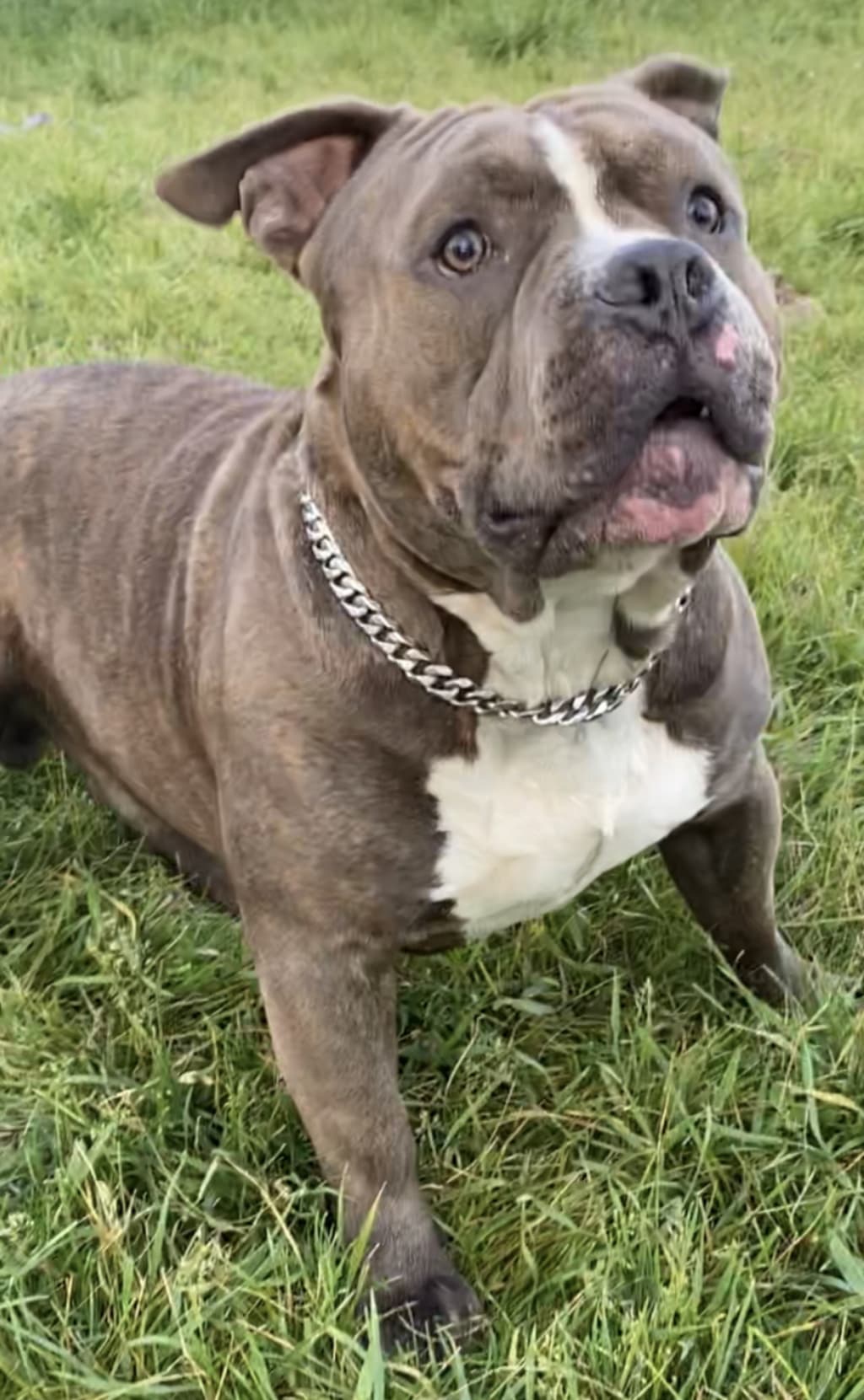 He is now a thick, gorgeous stud. He is a little over a year old, and soon will be producing sons and daughters of his own. But no matter how grown up he gets.. how high he can jump in my dog park, or how safe I feel when he curls up in my bed at night.. at least once a day, I look into his big bully face, and remember that lifeless little puppy that took my breath, and my heart, and made them his own.