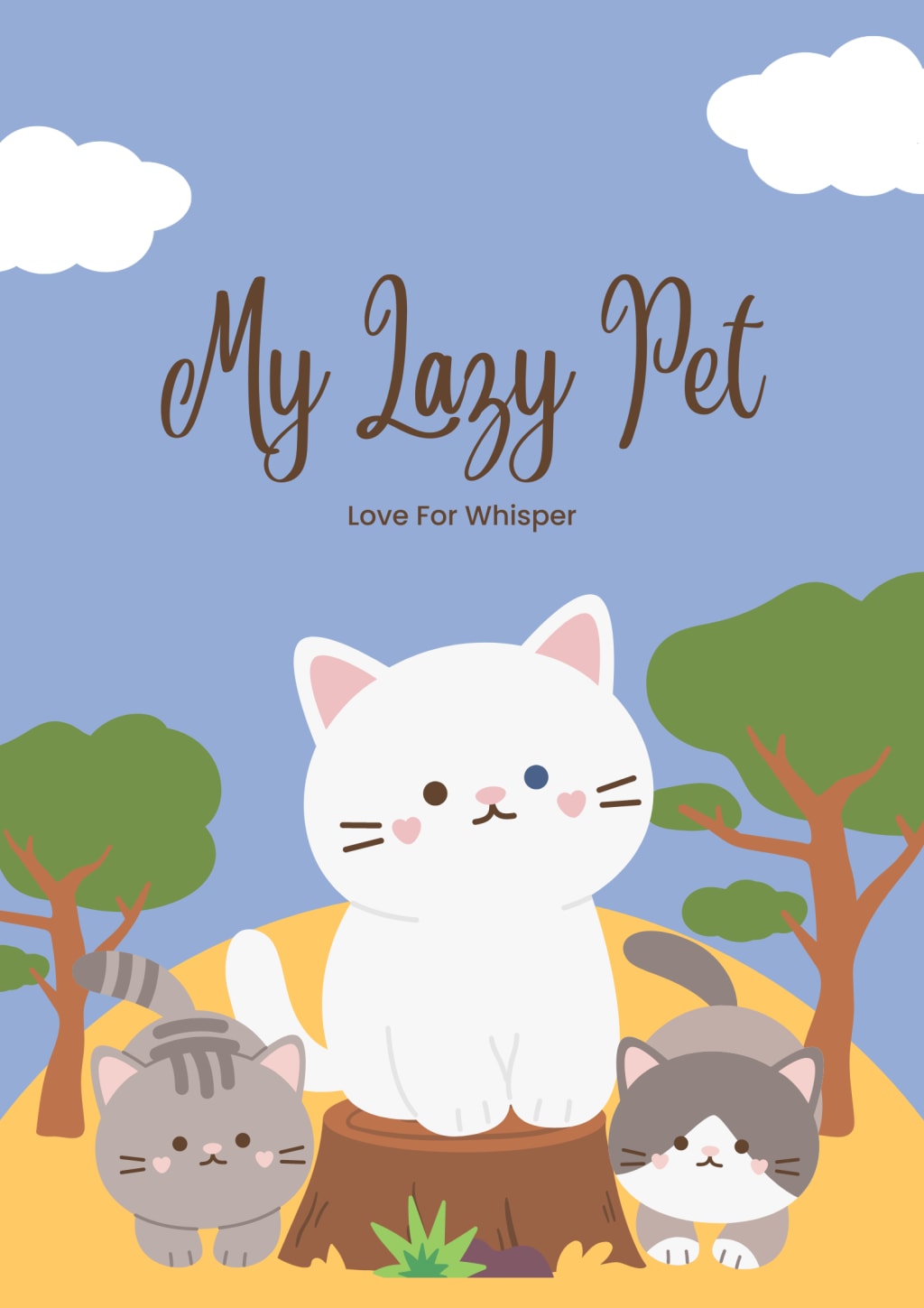 Once upon a time, in a cozy little house in the countryside, there lived a lazy cat named Whisper. Whisper was a handsome feline with a soft fur coat of black and white stripes, and bright green eyes that sparkled in the sun. He lived a very luxurious life, with a comfortable bed to sleep in, a never-ending supply of cat food, and plenty of toys to play with. But despite all of this, Whisper was a very lazy cat.