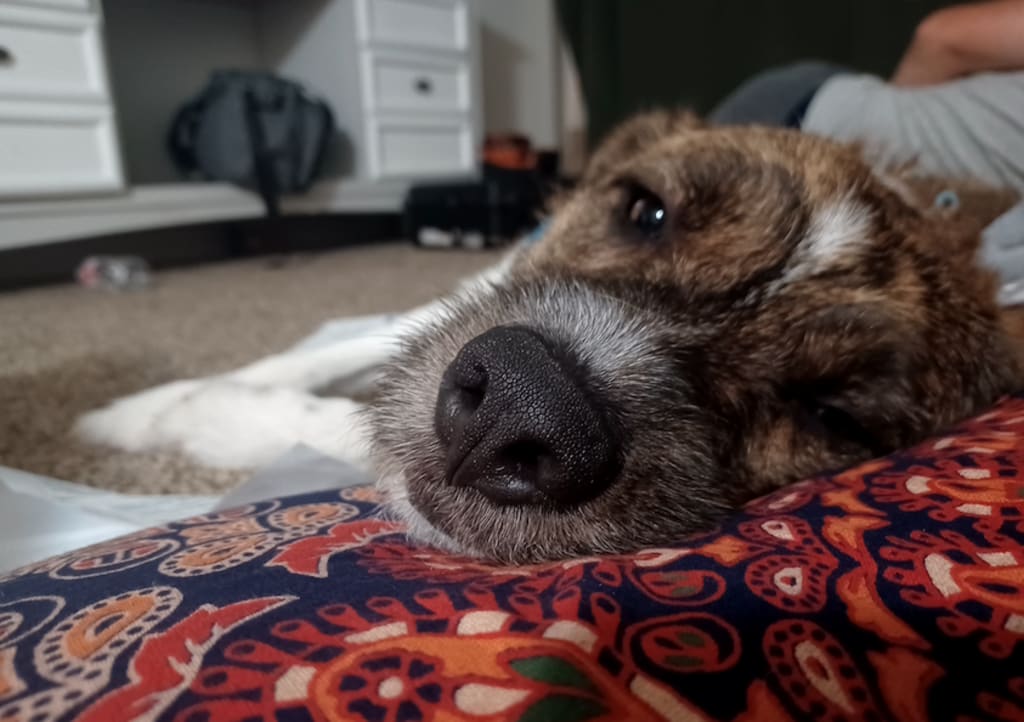One event that I wished I could take it away from him was when my partner and I had a heated argument. He was at the wrong place, at the wrong time. My boy was tasered by three police officers when they showed up. He was happy barking and tail wagging when the officer showed up at the door. Lander is a high-energy dog so he likes to jump but he did not jump at them. I thought my boy was dead after three shots. I was hyperventilating, my anxiety shot up, and I felt numb. I screamed and felt my soul jumped out of my body. The presence of cold sensation and dizziness was felt. He did not deserve that, he did nothing wrong. To story short, I was able to get an attorney and their body cams. The DA was not happy with how the officers handled the situation and especially shooting at my dog with my baby present. They dismissed everything. I was still very angry because they still did not take away my dog's PTSD. They did not offer classes to help heal him. I was advised by friends and family to rehome him because my home and I can be a trigger to his trauma and anxiety. I was devastated and I did not want to give him up. Was I selfish to think I could help him? I felt like only I could help him. I want to believe in healing him by myself even if it takes years because the echoes of my friends and family saying that he won't change was causing me anxiety. I just know that his PTSD had made him a different dog. I do not think anyone else would understand him as I do. I do not feel that anyone would be able to handle him when he is in distress or his anxiety acts up. His guards up with people and he has been barking consistently. He barks at everything, noises, men, and moving objects. Times where he barks all night. This part of him, I had to adapt to work around it and make sure he doesn't harm anyone. Thank God, no one calls to complain about him. I had to defuse his anxiety by avoiding walking near people. I have to keep a leash on him at all times. I have to make sure that when he gets let out is during the time when there aren't many people outside either. It was like raising a puppy all over again and getting to know their persona and trying to correct them. Soon, I was able to distract him from getting anxious. I found what he loves most and that is fetching frisbee. He was night and day! I knew this big improvement would occur because I had faith that there can be ways to help him with his condition. I found this out one day, a little girl came running out of a nearby parking lot to play with us. I was honestly scared because I did not know how my dog would react to her running at us and if he was going to bark at her. But right away, I threw the frisbee in the air and tell the girl to wait. I handed the frisbee to her and she threw it at him. He was in his little world and started dropping his frisbee for her to throw. That's when I felt confirmed that he would not hurt anyone if they showed up around his playtime. Ever since then, my anxiety isn't as bad when if his frisbee is present. I was able to have people visit our home again. His frisbee is his medicine!