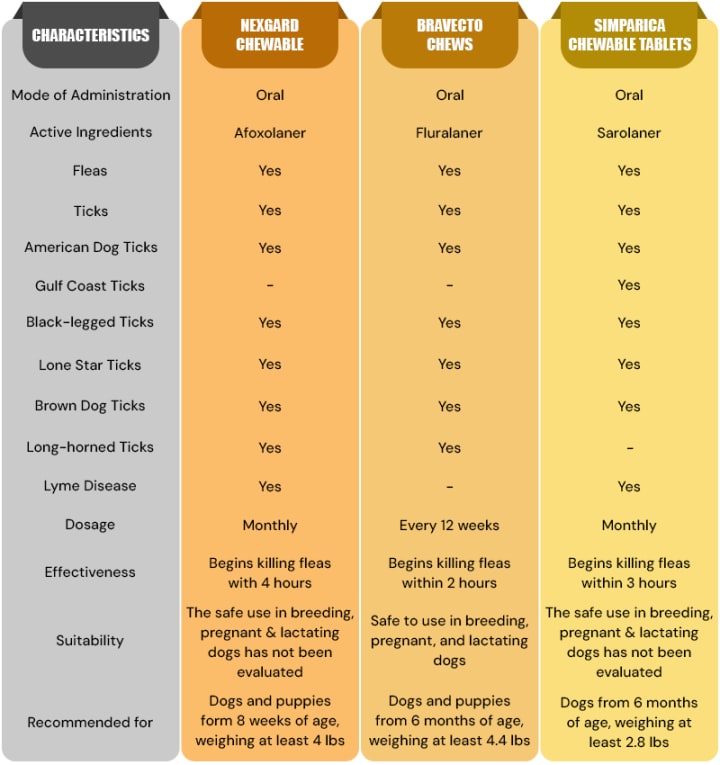 Nexgard vs. Bravecto vs. Simparica: Comparison Table