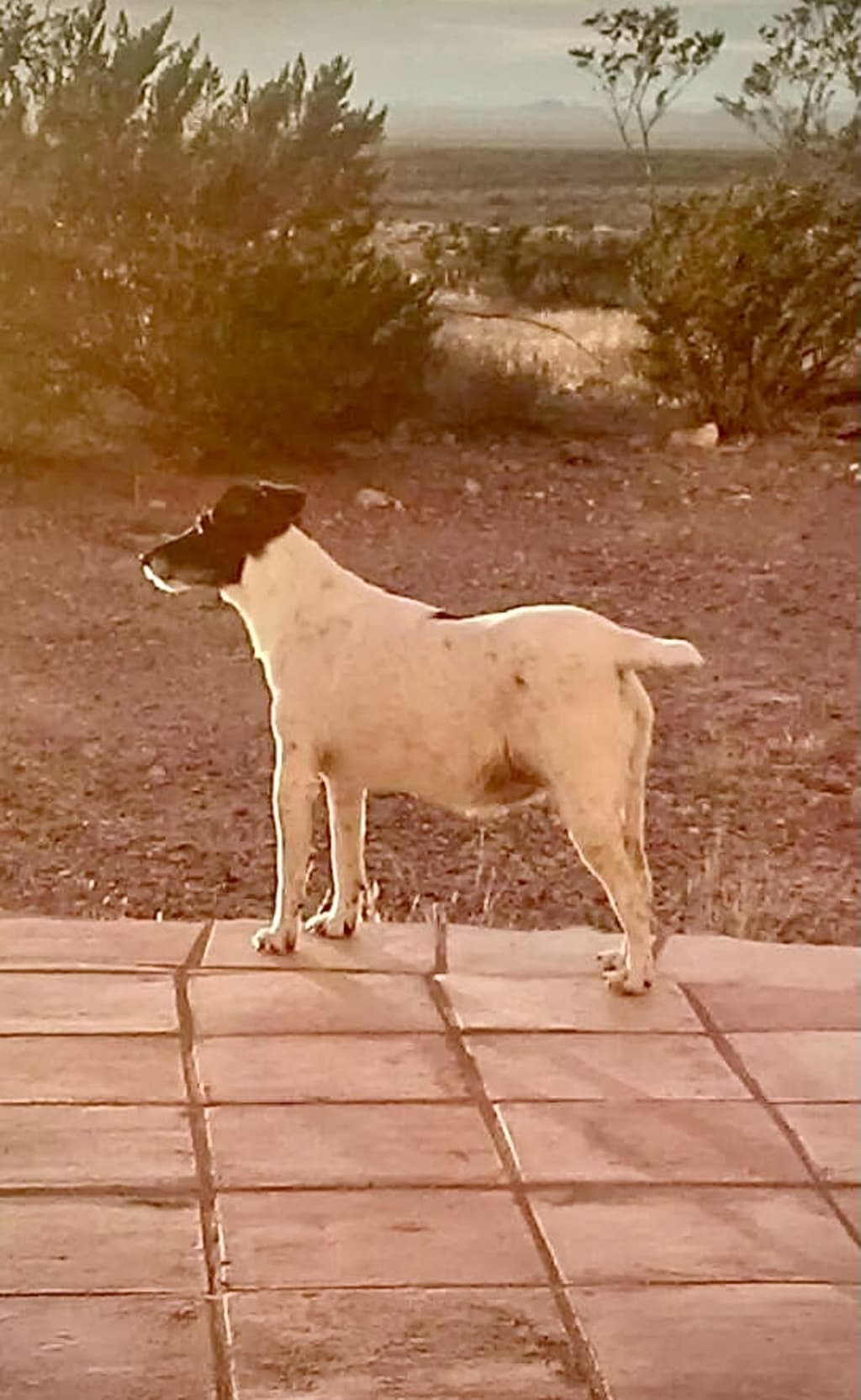 Pippin’s latest brush with death happened last spring, with his pal Ruger. Ruger was a Chihuahua mix, whom I loved dearly. Dogs, the creatures of habit they are, roused me out of bed, at what seemed unusually early that April dawn, to go outside and get some business done. I let the dogs out, who were inseparable, and I went back inside for a moment to put on a pot of coffee. This was our normal routine, albeit earlier, and besides, the pups never ventured very far. All of the sudden, I heard the unmistakable high-pitched yelp of a little dog, namely Ruger, in big trouble. I dropped the coffee pot, yelled for my significant other to grab the rifle, and we ran outside. I raced towards the horse paddocks, and so did my thoughts: My dogs are nowhere to be found. They were gone! What in the Hell just happened?!! After what seemed like an eternity, (but was actually only a few minutes), after hopelessly and fruitlessly whistling and yelling for my dogs, I had come to the sickening realization that it was the beginning of coyote denning season. A band of coyotes had lured the dogs out to the paddocks. With the significant other’s expert tracking skills, we were able to find a blood trail, and a few coyote tracks about a quarter mile from the horse paddocks. The further the trail had gotten from the house, the more confused we became: Where did the blood come from? How did it get so far from the house in such a short period of time? Where were the dogs? Coyotes can walk about 13 miles per hour. They can trot in a 20 miles per hour gait, and in a pursuit, coyotes run about 40 miles per hour. In other words, they are fast, so don’t buy into the Looney Tunes cartoons. A little over a half a mile away from the house, off of a small butte, surrounded by arroyos and a grassy plain, we find Pippin. He is headed back to the house, and he is limping and exhausted. I am overjoyed and relieved to see Pipster, but at the same time I am filled with an overwhelming sadness because I do not see my beloved Ruger with him, and I know what that means. I run to Pippin, and I see that his snowy white coat crested with a few patches and flecks of pitch black, is caked with blood and crusted with the dried saliva of the monsters I cannot find. Pippin fought with the coyotes, and he tried to save his best friend’s life. When he was not able do that, he tried to chase the monsters down. I am simply amazed. I wonder aloud: ‘Who has the heart to do that? How incredible, to do such a thing for your friend…’ Pipster looks at me, utterly defeated and dejected, almost ashamed, as if thinking: ‘I am really sorry Mom. I tried everything, and I just could not save Ruger.’ I carry Pippin back to the house wondering how on God’s green earth he ever found the energy and strength to run that far and fast, and to fight off a band of coyotes. I really do not know how old Pippin is, or where he came from… What I do know is: Pippin is a smooth fox terrier with the heart of a champion. He is about 14 years old. He just showed up at a barn in Fort Davis, Texas about 10 years ago, and the dog has simply never ceased to amaze me from the day I met him. There are those days that I must ask myself: ‘Did I rescue Pippin, or did Pippin rescue me?’
