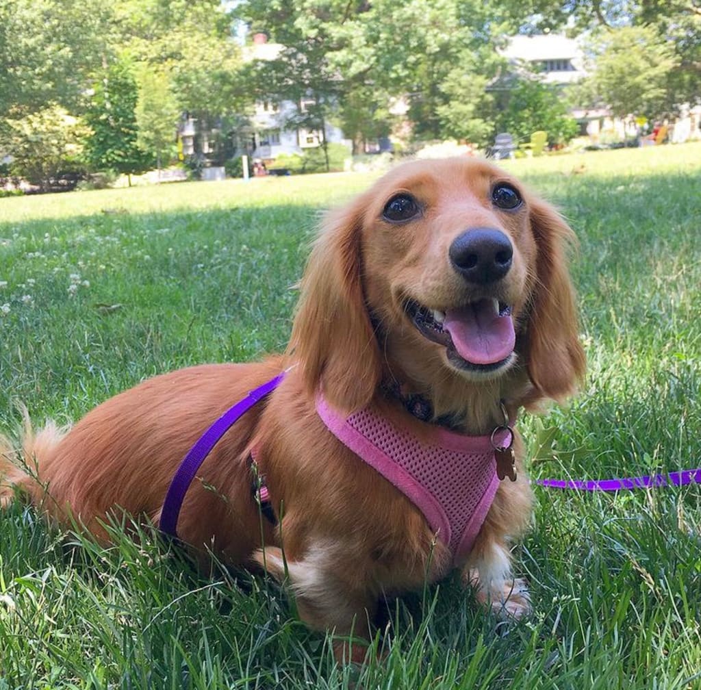 The Summer evening air was still heavy with the afternoon’s heat. We had just spent the last few hours at the nearby park trying to escape the sizzle of the city sidewalks. There we hid under the shade of an oak and watched our Rosie as she chased, rolled and bounced around in the grass. Rosie stands on about three inches of leg and has a back that stretches almost two feet. She is red and gold and funny all over. Her ears are too big for her extra small head and her eyes make her look like a cartoon. She is perfect.
