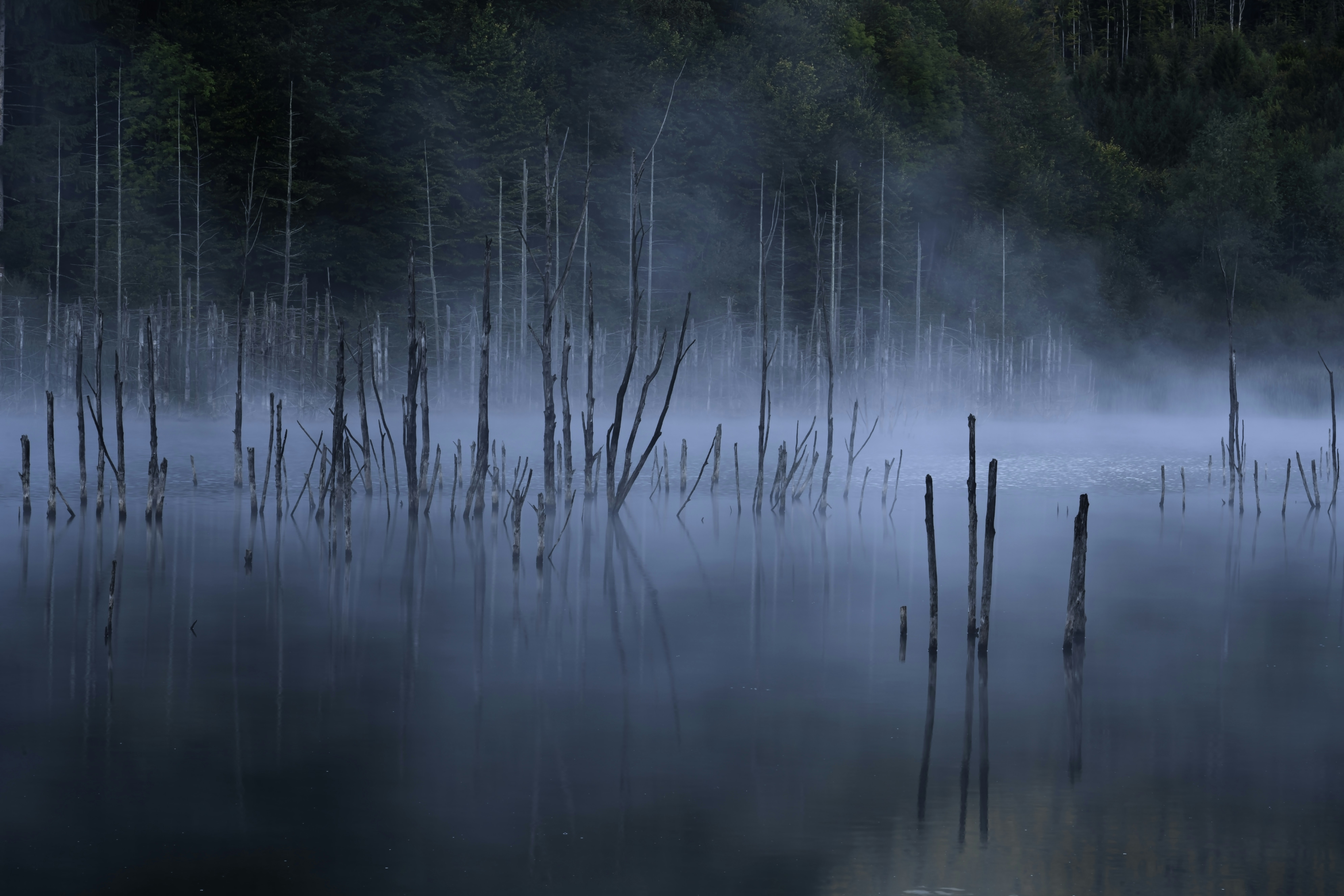 The moon was so big and so bright, I didn’t think I needed a flashlight. Spot and I made our way down to the lake. He was stopping to sniff each tree we passed. When we got down to the lake, I realized it was slightly foggy. It’s interesting how even a slight elevation change can make a difference when it comes to fog. It felt almost eery to have the moon reflecting in the dark waters of the lake, while fog was creeping in around me.