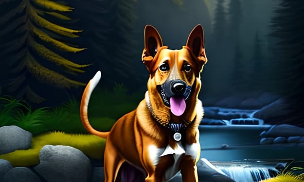 Sparky and Bella set off into the forest, the tall trees looming above them. As they walked, the forest grew darker and quieter, and Sparky's senses were on high alert. He knew that they had to be careful, as there could be dangers lurking in the shadows. Soon they came across a babbling brook, the water flowing over rocks and creating a soothing sound. Bella was hesitant to cross, but Sparky showed her how to jump from rock to rock, and soon they made it safely to the other side.