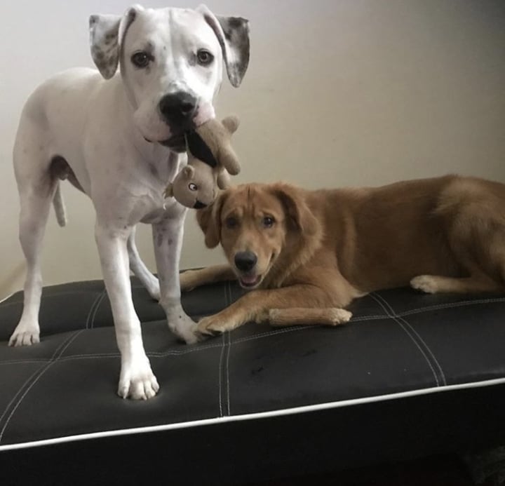 I’ll never forget the first time that Charlie and Sammy met. They were both still puppies at the time, around five months old. Their puppy energy was off-the-charts and their leashes kept getting unbelievably tangled up as they ran around in circles sniffing and nibbling at each other. My golden retriever Charlie was a feisty little blonde fluff ball, while Sammy was all white with short wiry hair, faint black spots and the prettiest eyes I’ve ever seen on a dog. When we met Sammy and his mom, we had not lived in the neighborhood, Orchard Gate, for very long and neither had they. It turned out our houses were just around the corner from each other, and we both admitted that part of the reason we got puppies was to meet new people. It was easy for us to become friends, since we had so much to talk about as fellow new puppy moms. What we didn’t realize at the time was that this was the start of a lifelong friendship, not only between us, but also for our puppies.