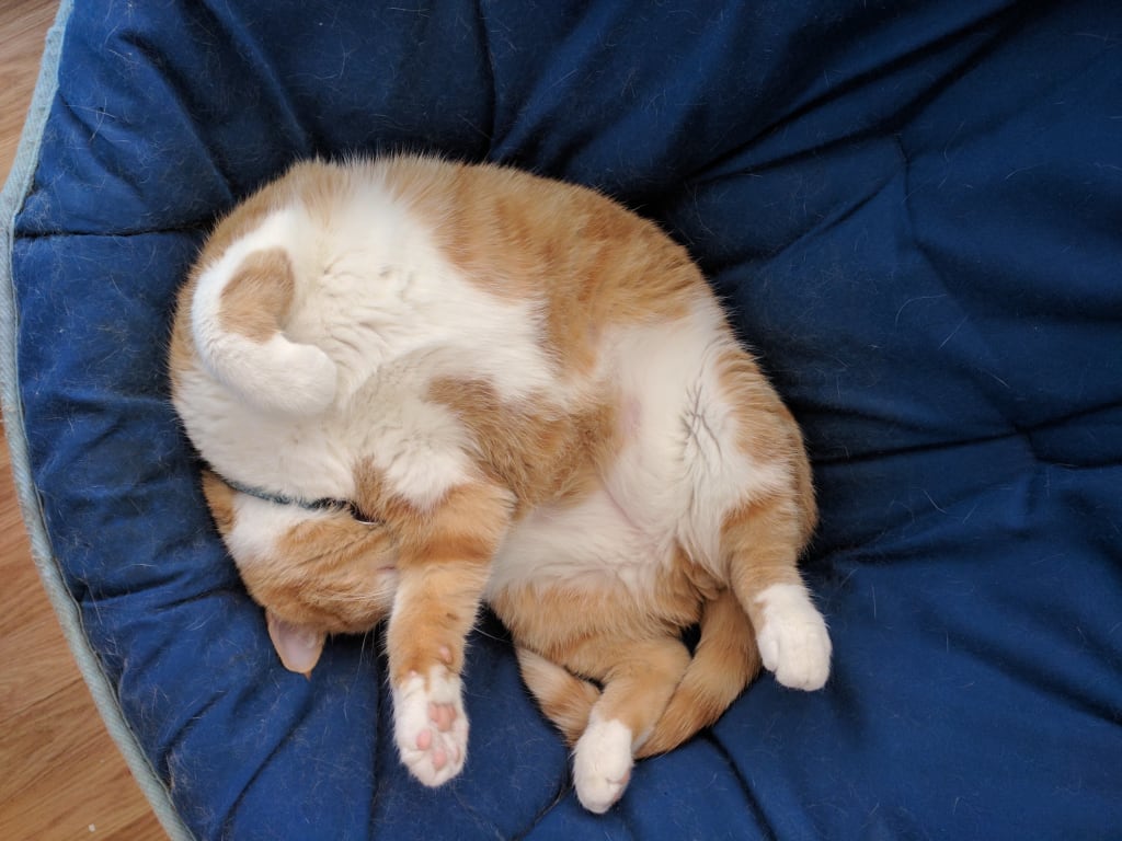 On a cold stormy day, this big fluffy orange tabby was found outside the office doors. Mara the general manager and cat lover couldn't let the feline suffer, so she opened the door for him. That evening Mara took him home to her family. The next day, she put up some flyers to see if anyone has lost a cat. Weeks went by with no response to the posters. At this point Mara and Jen, the owner started letting the cat stay at the office. The fur ball needed a name, so Jen came up with the name "Triskits", because of the unique shades of orange and brown. Mara bought the cat a pet bed, a special blanket, treats, and a bunch of toys. He became the main attraction to the office. Everyone came in to see the new addition to the office family. The next day, while playing with his toys, "Triskits" discovered a mouse, but the little critter escaped from his grip. That afternoon the mouse came out again and this time, crawled into Jen's purse. That evening as Jen was grabbing for her keys, to much of her surprise she grabbed the mouse's tail instead. Jen screamed and threw the rodent into the air. It fell a few inches short of Triskit's food bowl. The furry feline finally snagged the critter. then our fluffy little sidekick, became known as "The Pet Detective." Every morning "Triskits" would stake out the office, for more mice. he studied the place where the mice were coming in from. Triskits became known as the best Pet Detective in town. Everyone wanted to borrow him. So Jen, still needing him at the office, would only borrow the cat out for the weekend. Mrs. Smith came into the office on day, all frantic and needed "Triskits" help, but because there was such a big problem at her house, she asked Jen if she could borrow him longer. Jen came to a compremise and agreed for the feline to go to her house until Wednesday. During his time at Rose's house, "Triskits" caught ten mice. Since Rose Smith's son owned the paper, she wrote an article about how good The Pet Detective was at mousing. That Wednesday, after the feline's return Jen and Mara got several calls from residents and buisnesses wanting the cat to help with the mice problems. The news of the article had spread throughout the community and the nearby towns. "Triskits" had become quite famous. Jen decided to put up a good will offering in the office, to help fix things around town. the community needed new benches, picnic tables and playground equipment. Soon everyone was borrowing The Pet Detective and Jen eventually made enough money to fix everything. When the news got out to Mayor Nelson, he held a special meeting to give Triskits The Pet Detective a medal. the medal said, best Pet Detective of Marcy County. Mara and Jen were so proud, that they decided to give Triskits a different home. So every night when it was closing time, Jen agreed to take the fluffy tabby home. "Triskits was so excited and jumped into Jen's car, anxiously waiting his new house. Not that he didn't like it at the office, but he wanted more room to explore. When he got to Jen's, he ran up and down the stairs, slid across the shiny hardwood floors and found his very own window, right in the living room, facing the bird feeder. "Triskits" was very much at home. At night, after playing, The Pet Detective needed his rest and curled up in a ball on Jen's bed and fell asleep. Although Jen lived alone, she loved the company of her friend. The next day, Jen was ready to go back to work and to much of her surprise, "Triskits" was waiting at the door, ready to go for a ride again. When our big helper got back to the office, he went back to work doing what he loved, which was keeping the building safe from any mice.