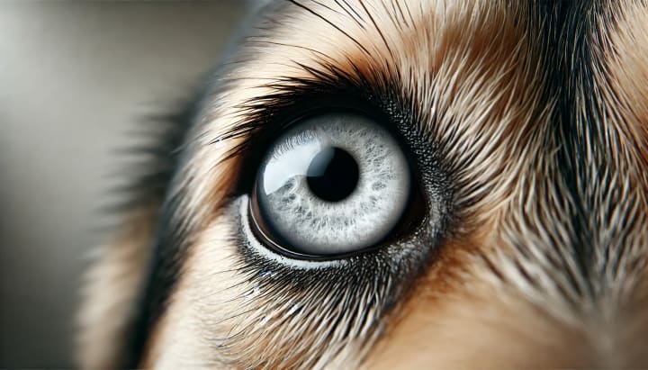 Close-up of a dog's eye with diabetic cataracts