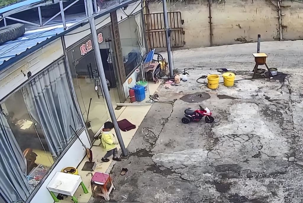 "Mom, Mom!" The son, who was playing in the yard, suddenly called out loudly to the woman in the house. The son ran into the house excitedly, shouting as he ran, and dragged her outside.