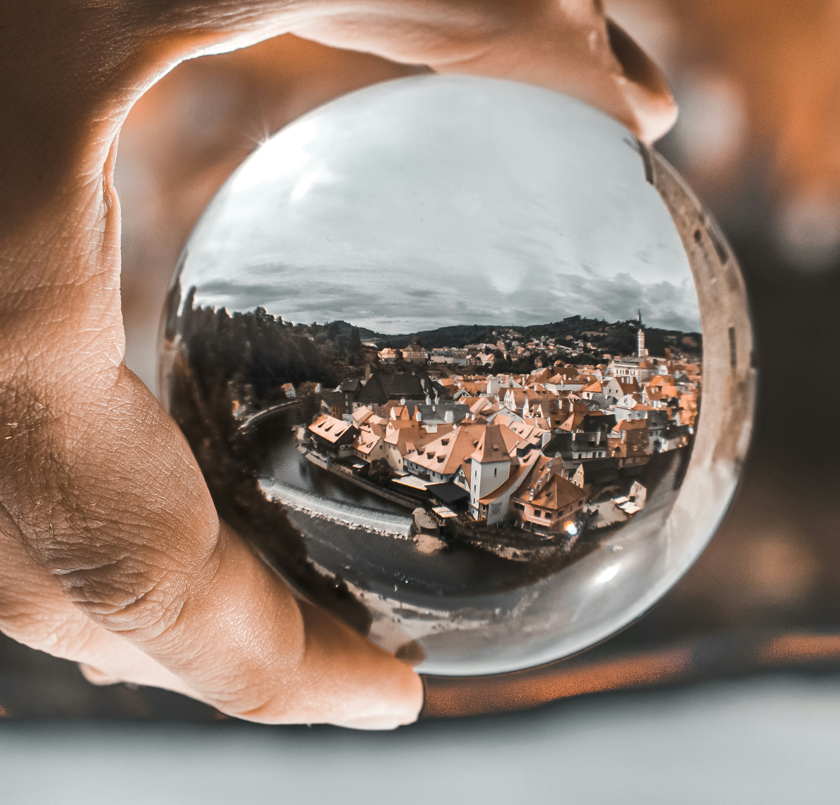 You can focus on an image that is up close or far away. The glass sphere acts like a fisheye lens and gives your subject that global view.