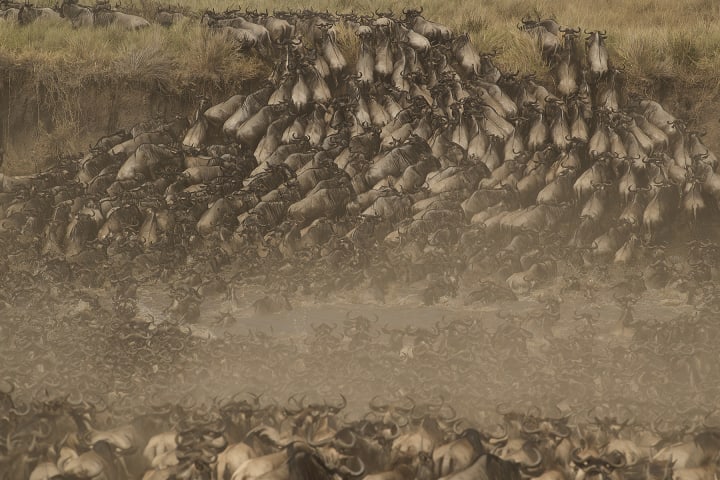 The great migration or the annual wildebeest migration takes place in Masai Mara starting from June to October. Millions of wildebeest are joined by other plain animals like zebras, impalas, gazelles, and more during the migration. The migration occurs as the animals search for food and water.