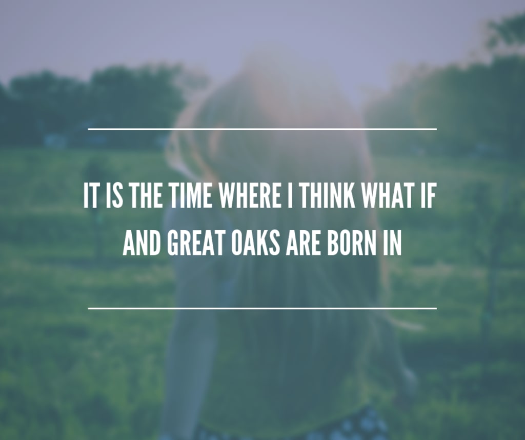 Yet it is the time where I think what if and great oaks are born in