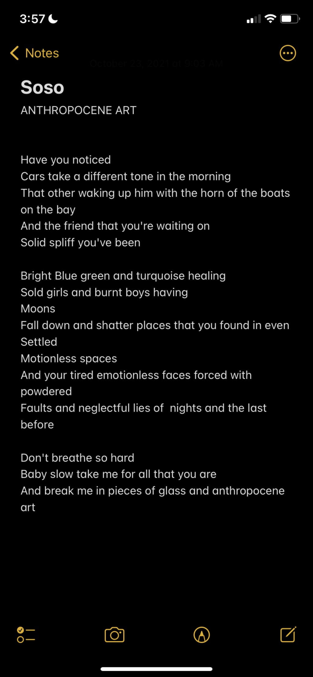 And break me in pieces of glass and anthropocene art
