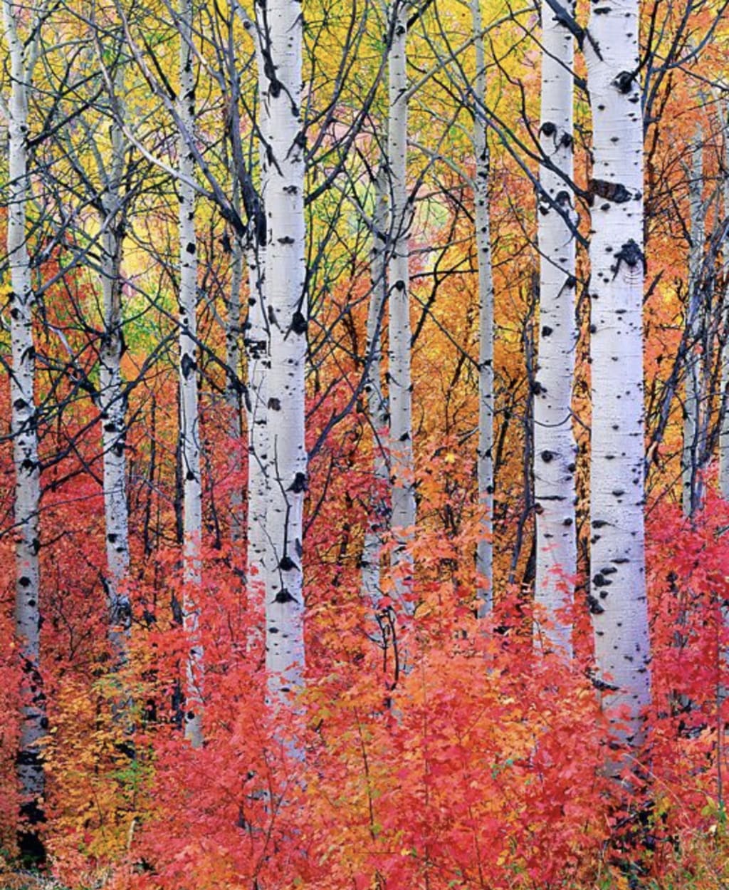 The earth glows with hues of amber, crimson and gold.