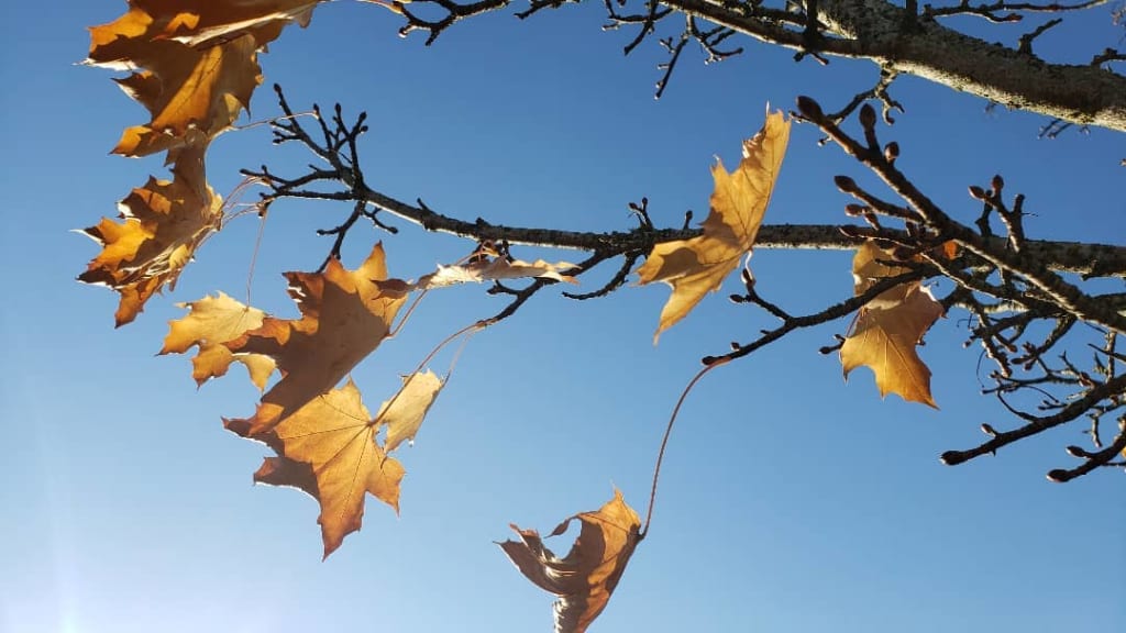Tossing leaves like confetti.