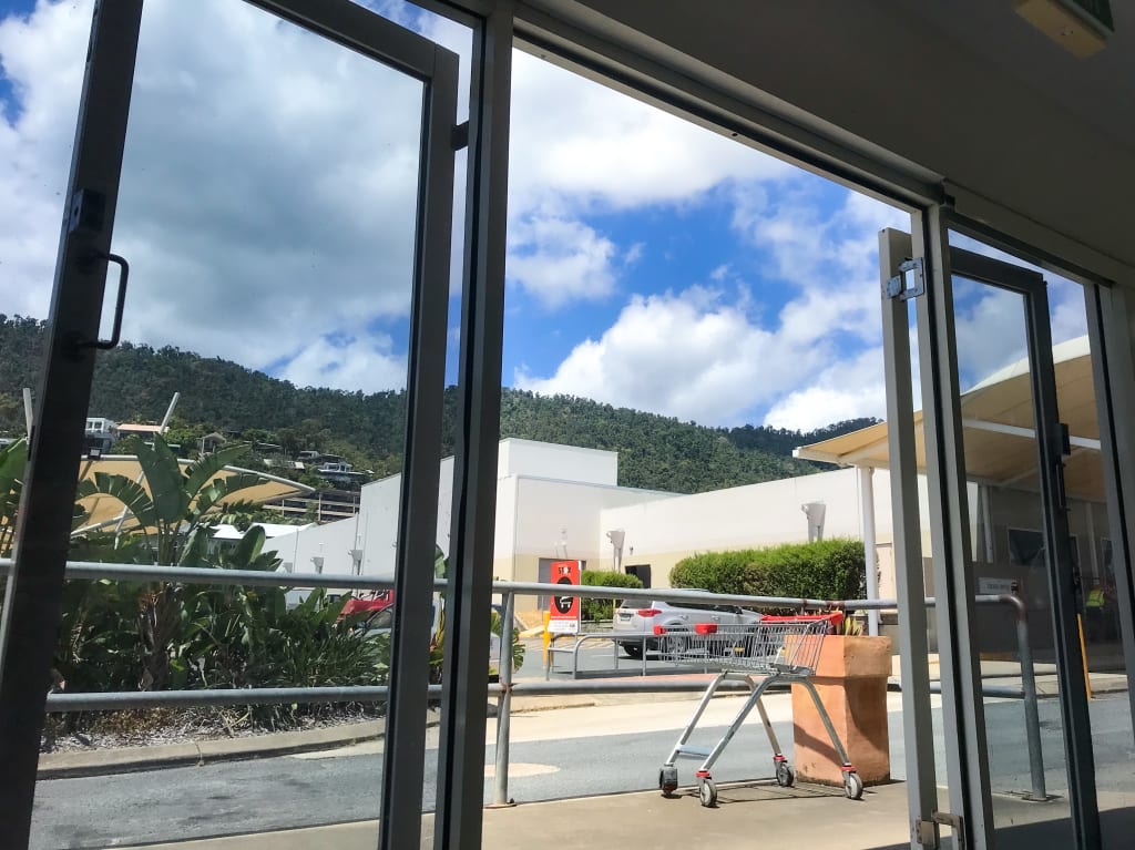 We walked across the car park with our laundry in plastic bags