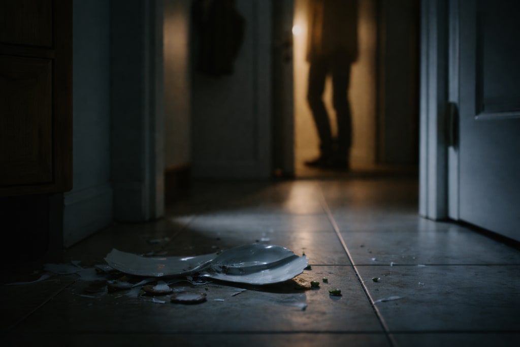 Plate shatters on tile