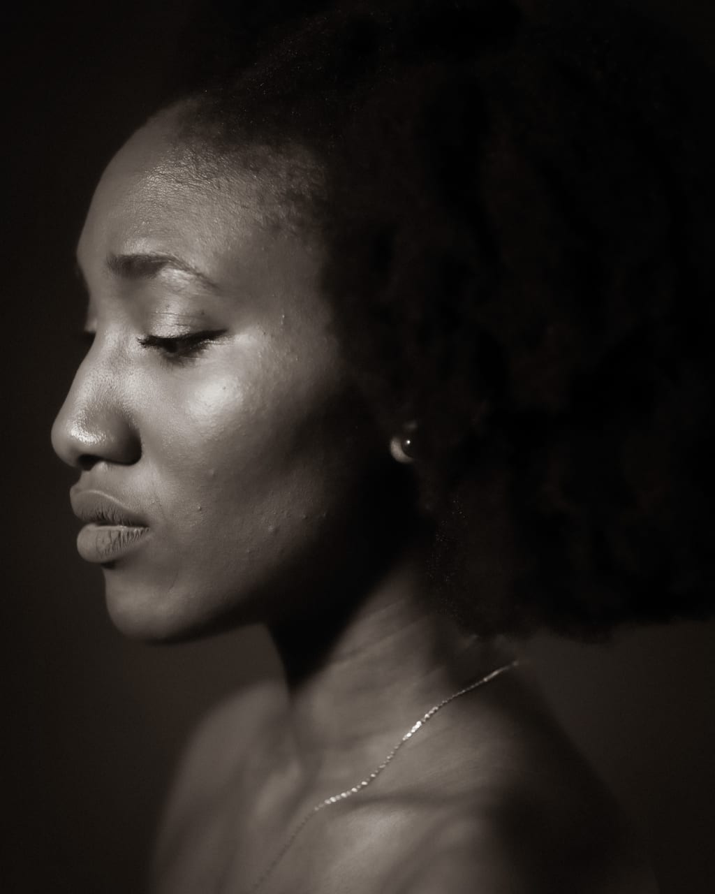 The white of our teeth contrasts our deeply shaded skin