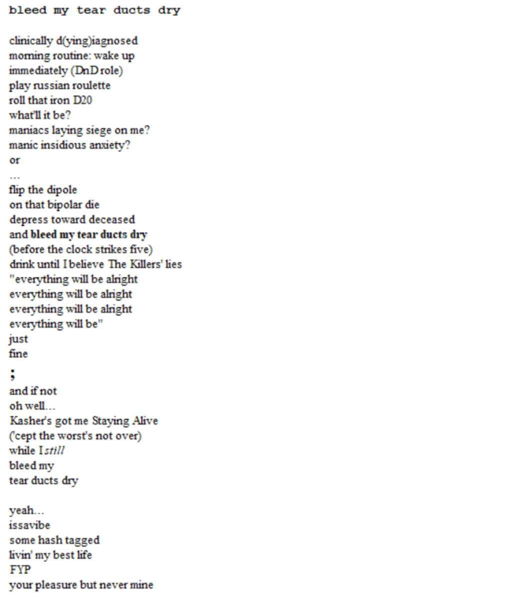 and bleed my tear ducts dry