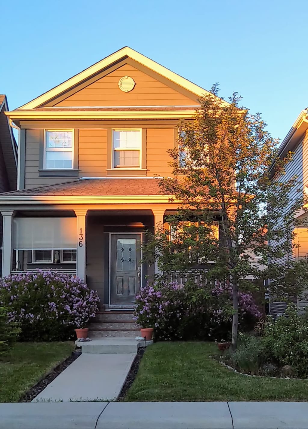An inviting covered porch with wicker chairs and pots of flowers for us to sit and take in all the warmth and smells of summer nights, surrounded by the heavenly scent of lilacs in the spring.
