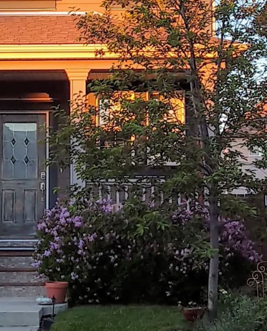 An inviting covered porch with wicker chairs and pots of flowers for us to sit and take in all the warmth and smells of summer nights, surrounded by the heavenly scent of lilacs in the spring.