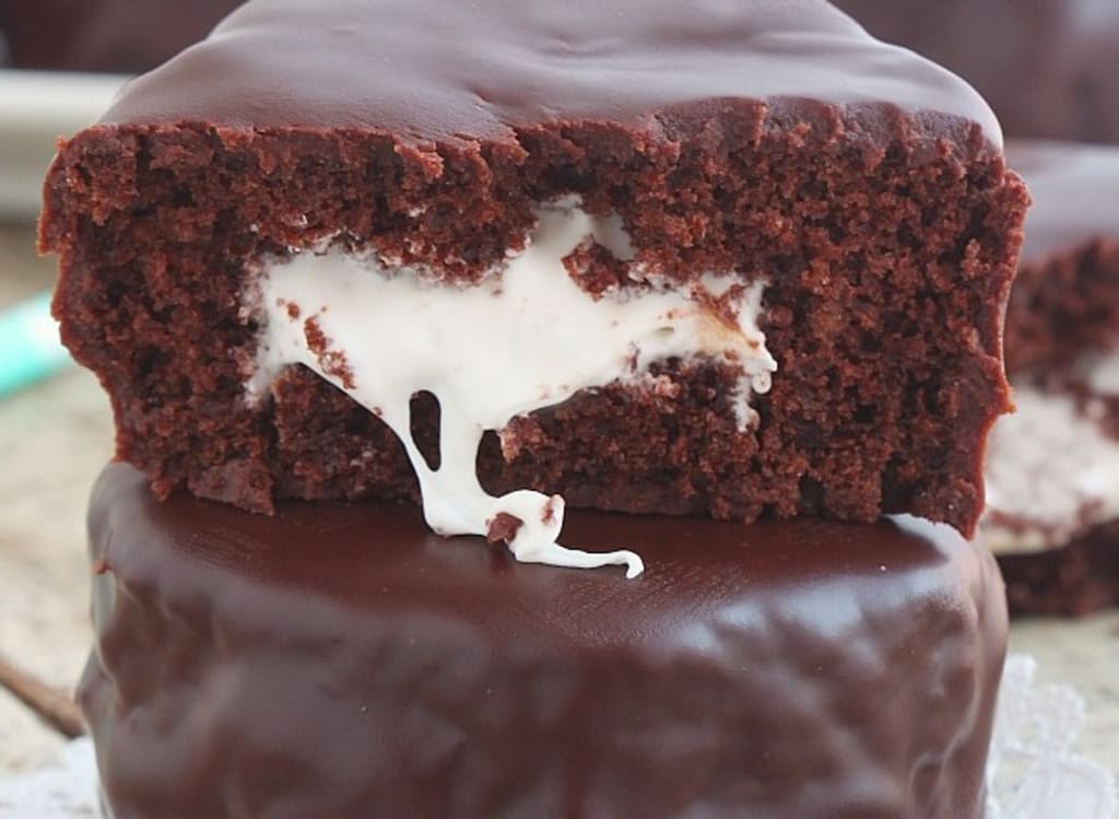 sinks her teeth into moist sponge,