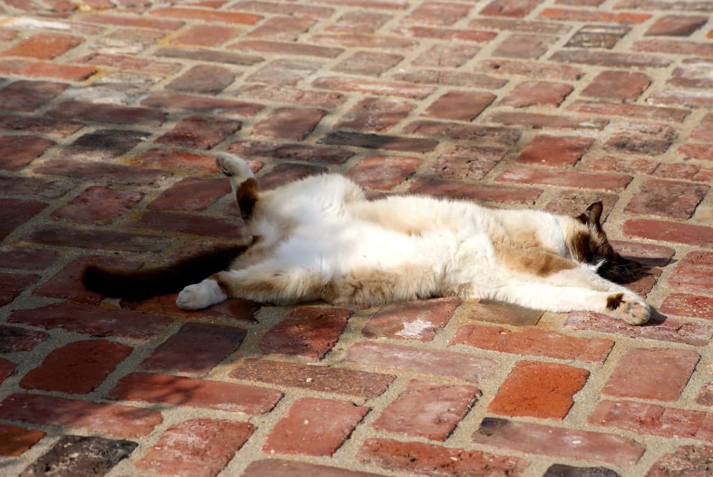 I saw this cat sprawled in a driveway.