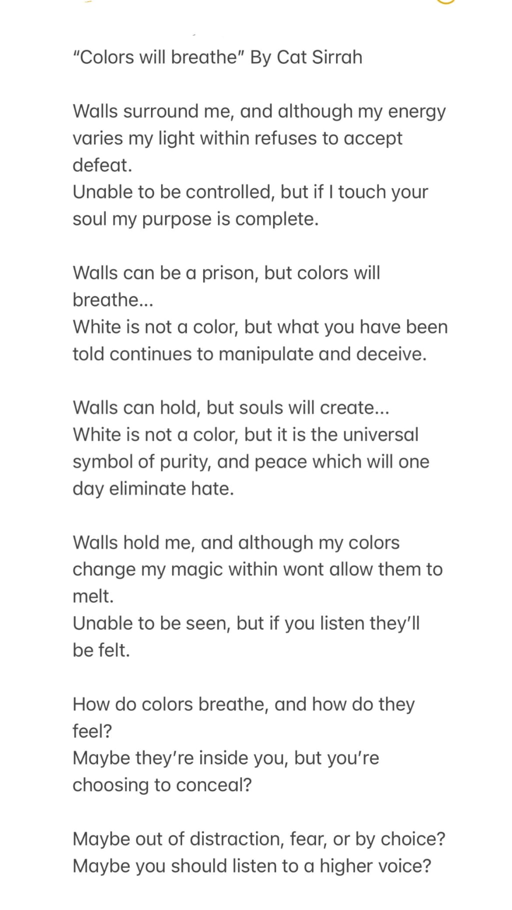 Walls surround me, and although my energy varies my light within refuses to accept defeat.