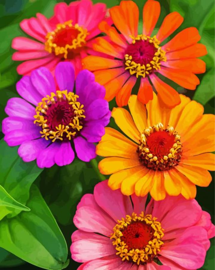 Painting Summer's Pride: Zinnia Flowers Paint by Numbers
