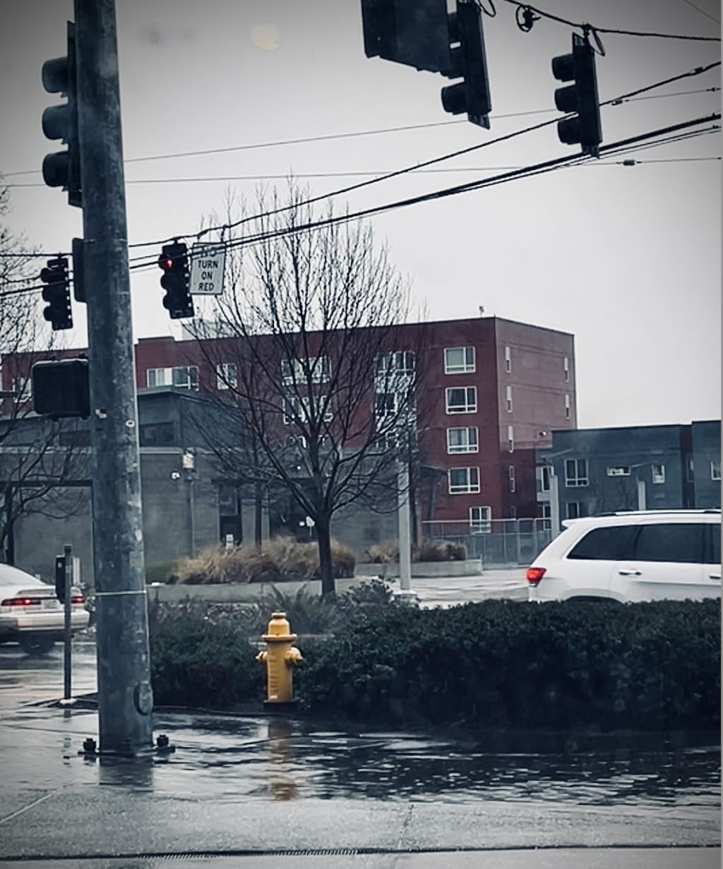 Cold rain stings my face