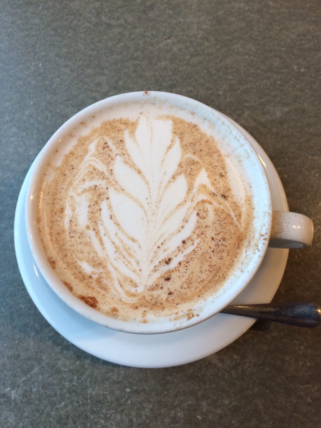 Hiding behind a black cup of coffee,