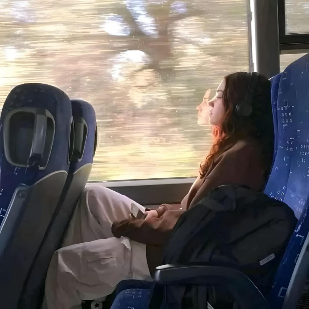 Gazing at her reflection, a girl stares, unsure of what's to come,