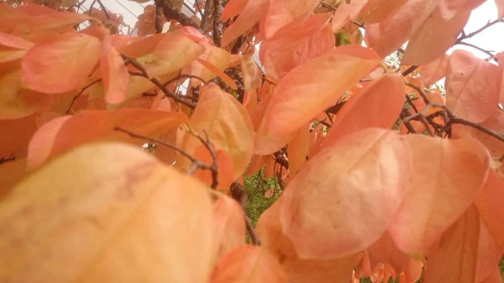 of autumnal persimmon leaves