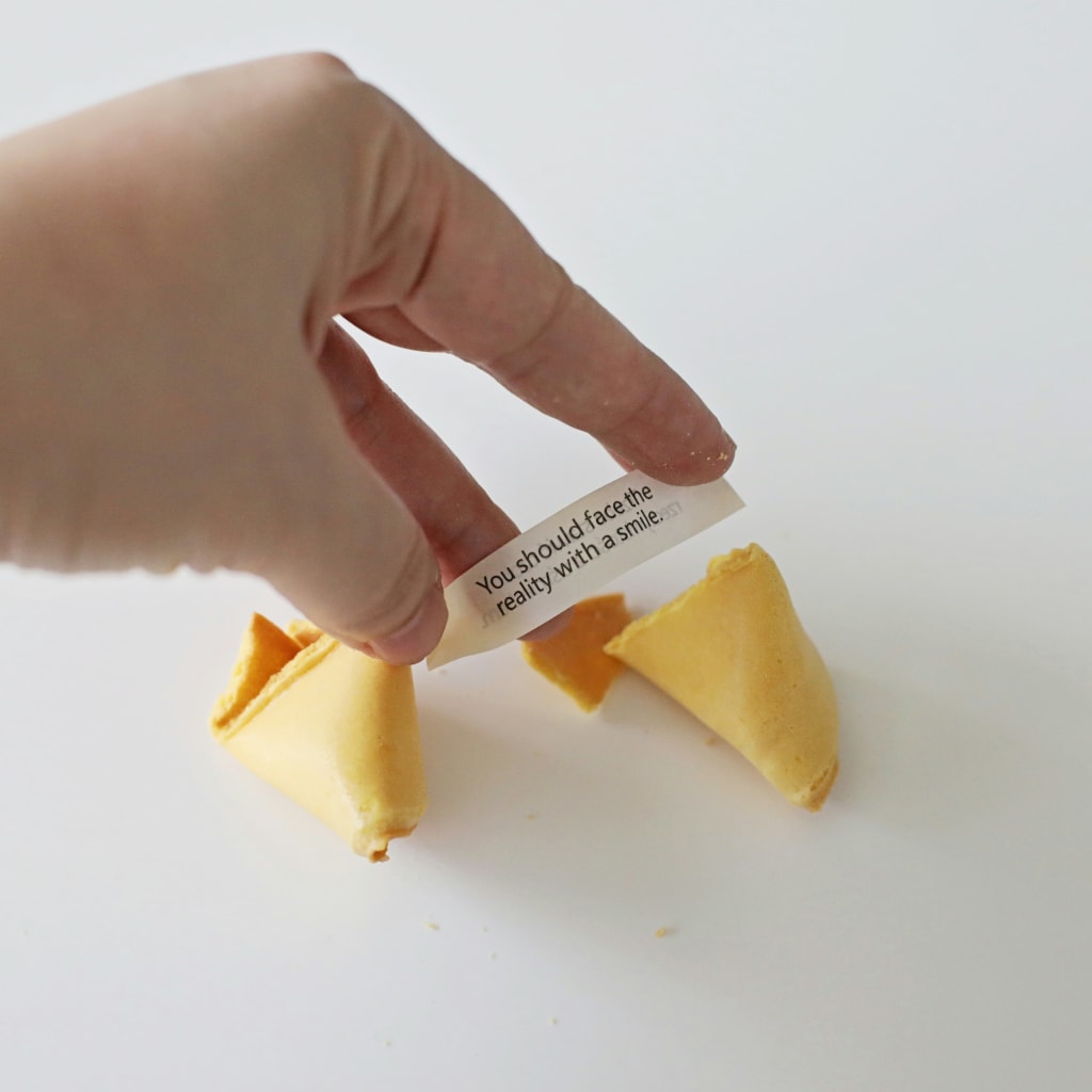 We're still wearing our coats as we break open the fortune cookies.